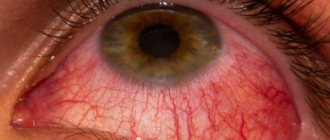 - Excess blood in the vascular system of the eye , resulting from conjunctivitis. In such cases, cutting pain appears, accompanied by itching and burning.