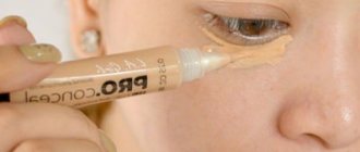 Attention! The color of the concealer should match your skin tone or be a little lighter. Beige or yellow concealer can be used to cover up bluish circles. The salmon tone of the concealer helps disguise yellowish circles under the eyes.