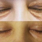 | A white stripe of sclera may appear above the cornea if you look down | |