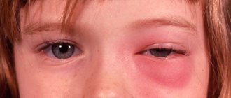 - redness of the white, swelling, protrusion of the eyeball;