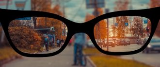 If myopia is present, the doctor will subtract the optical power of presbyopic lenses. However, clarification is always required. It is possible to understand exactly which diopters are suitable for the patient only after trying them on. For moderate and high myopia, you will need two pairs of glasses, which will have to be worn alternately. For convenience, it is better to choose multifocal contact lenses or bifocal glasses with several optical centers for vision at all distances.
